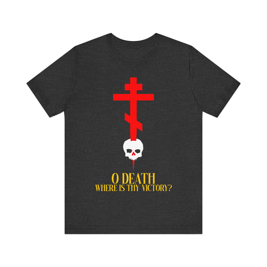 O Death Where is Thy Victory? (1 Corinthians 15:55) | Cross Stabbing Skull | Jesus Christ is King | Orthodox Christian Cotton Unisex T-Shirt