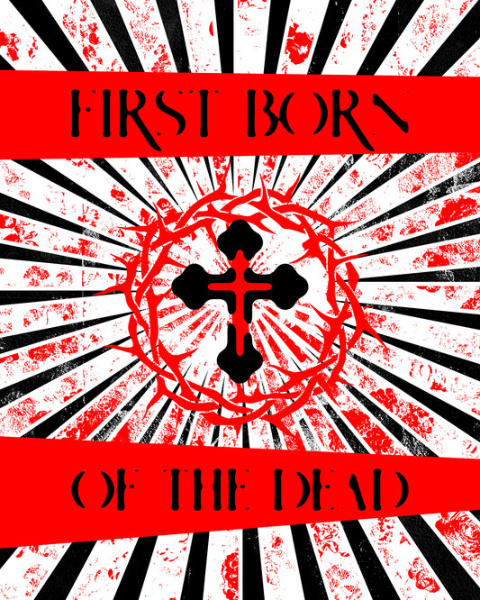 First Born of the Dead | Orthodox Cross and Crown of Thorns | Red White & Black Design with Rays | Orthodox Christian Cotton T-Shirt