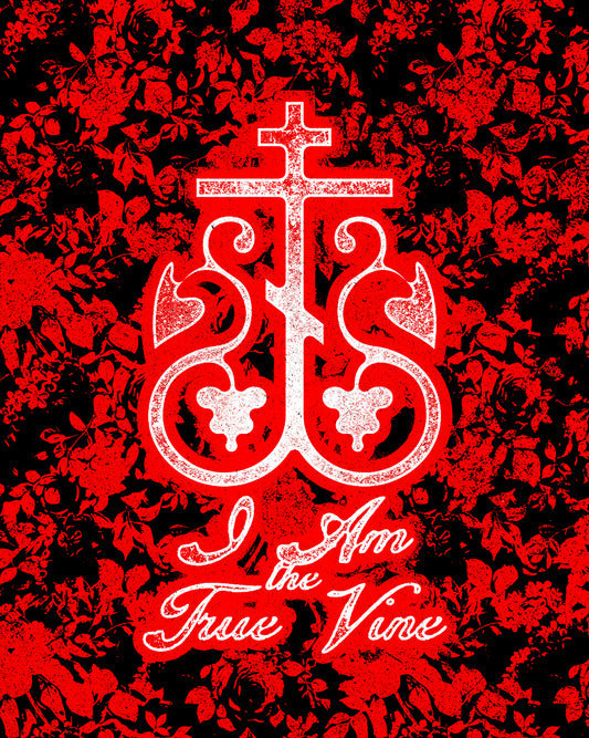 I Am the True Vine (John 15:1) | Orthodox Cross Vine Monogram | Red and Black Floral Design | Orthodox Christian T-Shirt