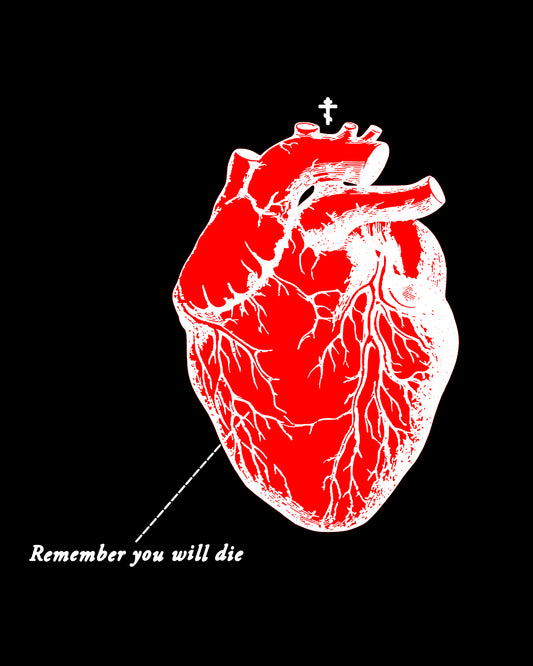 Remember You Will Die | Retro Medical Textbook Heart Design | Inverted Shadows | Orthodox Christian T-Shirt