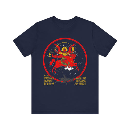 Archangel Michael of the Apocalypse Icono-Graphic | War in Heaven (Rev 12:7-9) | Satan Cast Out | Orthodox Christian Cotton T-Shirt