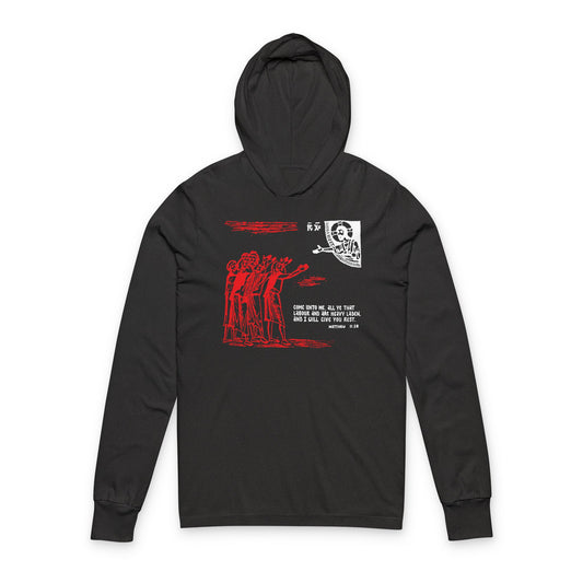 Come Unto Me All Ye That Labour & Are Heavy Laden (Matt. 11:28) | Icono-Graphic Drawing | Orthodox Hooded Cotton Long Sleeve Shirt