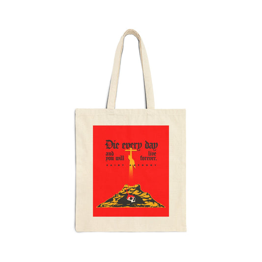 Die Every Day and You Will Live Forever | St Anthony the Great | Golgotha Cross, Skull of Adam | Red Design | Orthodox Christian Tote Bag