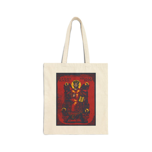 Every Knee Shall Bow (Phil 2:8-11, Isaiah 45:23) | Christ Enthroned IconoGraphic | Ezekiel's Chariot | Orthodox Cotton Tote Bag