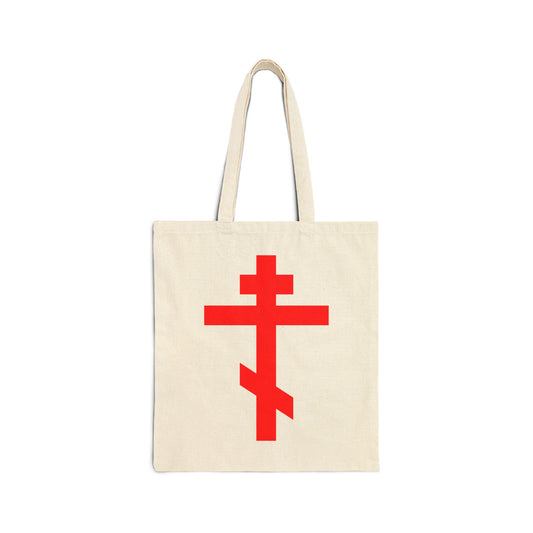 Bright Red Orthodox Cross | Preserve Thy People By Thy Cross, O Lord | Crucified With Christ | Christ is King | Christian Cotton Tote Bag