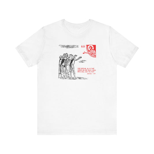 Come Unto Me All Ye That Labour & Are Heavy Laden (Matt. 11:28) | Icono-Graphic Drawing | Orthodox Christian Cotton T-Shirt