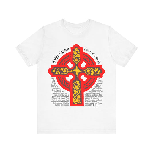 Lorica Shield Prayer of St Fursey | Red & Yellow Celtic Cross | Irish Orthodox | Western Rite | Christian Cotton T-Shirt