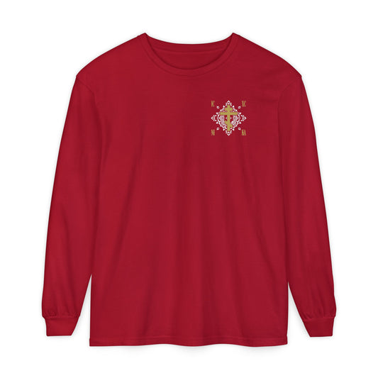 NIKA Red Orthodox Cross | NIKE Logo Mashup | Minimalist Corporate Sports Logo Aesthetic | Orthodox Christian Cotton Long Sleeve Shirt