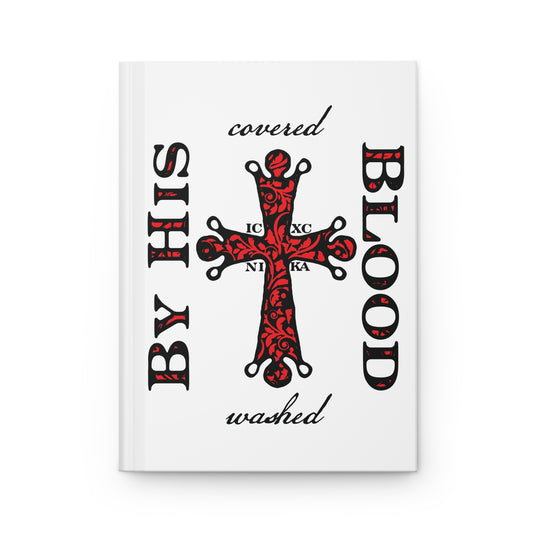 Washed/Covered By His Blood (1 John 1:7) | ICXC NIKA Ornate Red Orthodox Cross | Orthodox Christian Hardcover Journal