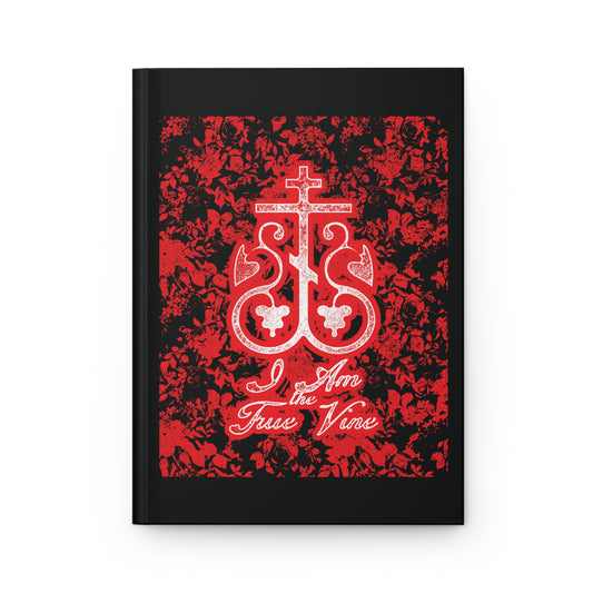 I Am the True Vine (John 15:1) | Orthodox Cross Vine Monogram | Red and Black Floral Design | Orthodox Christian Hardcover Journal