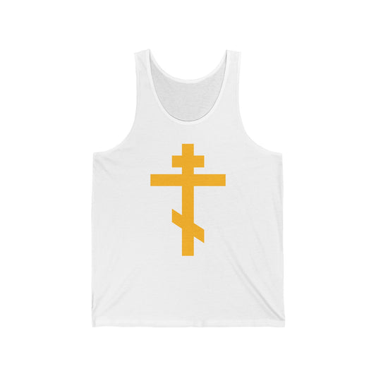 Yellow Orthodox Cross | Precious and Life-Giving Weapon of Unseen Warfare | Scourge of Demons | Christian Cotton Tank Top