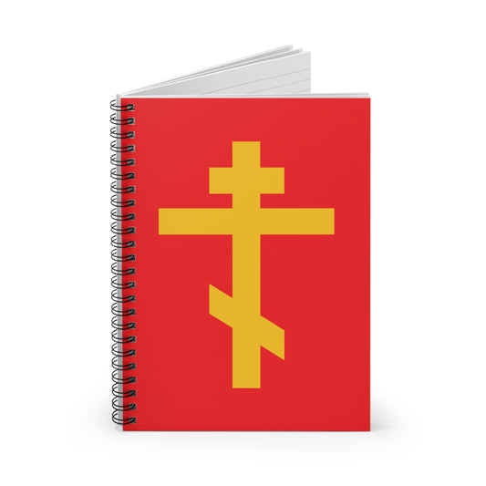 Yellow Orthodox Cross Red Background | Precious and Life-Giving Weapon of Unseen Warfare | Scourge of Demons | Orthodox Spiral Notebook