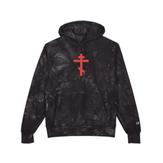 Red Orthodox Cross | Unseen Warfare | Athletic Ascetic Christianity | Tie-Dye Embroidered Heavy Hoodie | Orthodox Christian Premium Streetwear