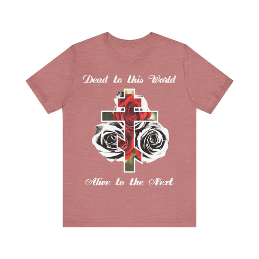 Dead to This World Alive to the Next | The Cross is the Doorway to Heaven | Red Roses, Black & White | Orthodox Christian Cotton T-Shirt
