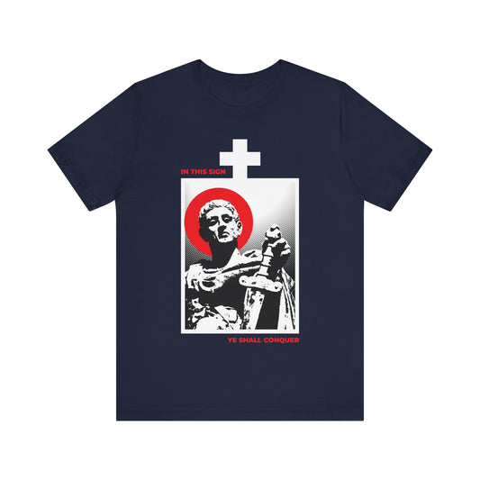 In This Sign Ye Shall Conquer | Statue of St Constantine the Great With Sword | Conquer Your Passions | Orthodox Christian Cotton T-Shirt