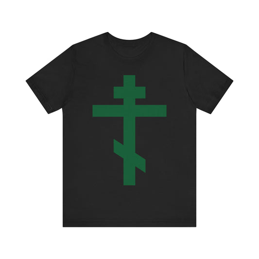 Forest Green Orthodox Tribar Cross | Preserve Thy People By Thy Cross, O Lord | Christ is King | Christian Unisex Cotton Tee