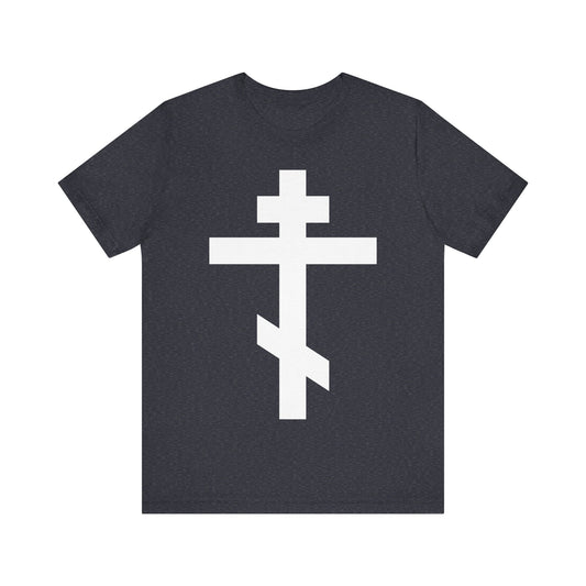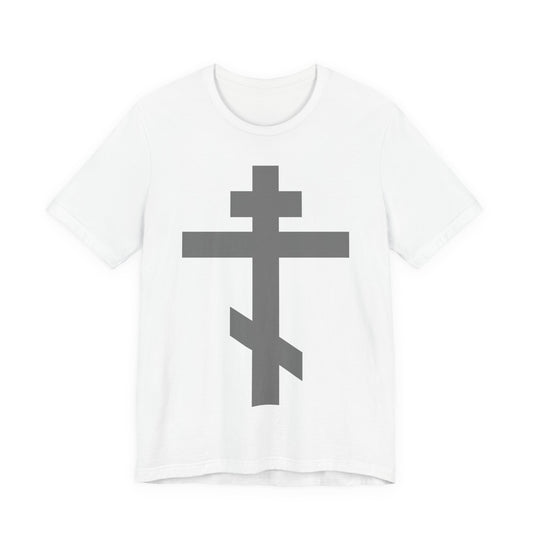 Light Gray Orthodox Tribar Cross | Preserve Thy People By Thy Cross, O Lord | Christ is King | Christian Unisex Cotton Tee