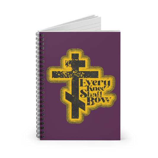 Every Knee Shall Bow | 70s Distressed Halftone Comic Book Aesthetic | Philippians 2:10-11 | Isaiah 45:23 | Orthodox Christian Spiral Notebook