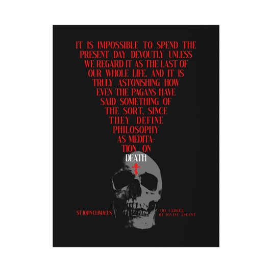 The Present Day As the Last Day of Our Life | St John Climacus | Skull with Red Orthodox Cross | Memento Mori | Christian Art Poster