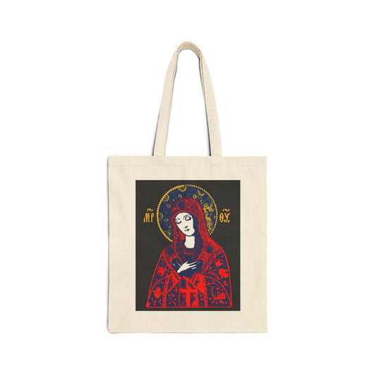 Joy of All Joys Tenderness Theotokos Iconographic Based on Traditional Orthodox Iconography | Bright Red Design | Orthodox Christian Tote Bag