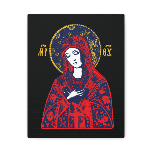 Joy of All Joys Tenderness Theotokos Iconographic Based on Traditional Orthodox Iconography | Red Design | Orthodox Christian Canvas Art