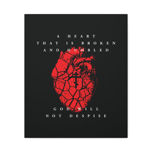 A Heart That is Broken and Humbled God Will Not Despise | Cracked Heart with Orthodox Cross | Repentance | Christian Canvas Art