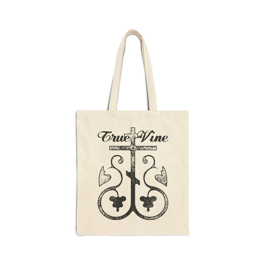 I Am the True Vine (John 15, Ezekiel 15) | Orthodox Cross with Grape Vine | Photocopy Effect | Orthodox Christian Tote Bag