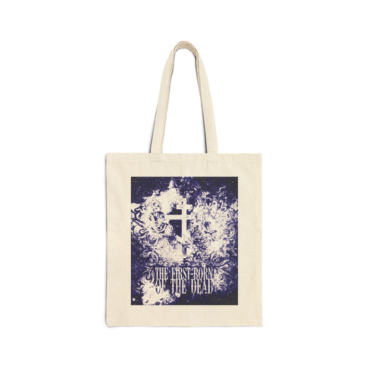 The First-Born of the Dead | Glowing White & Blue Textured Cosmic Orthodox Cross | Resurrection & Apocalypse | Orthodox Tote Bag