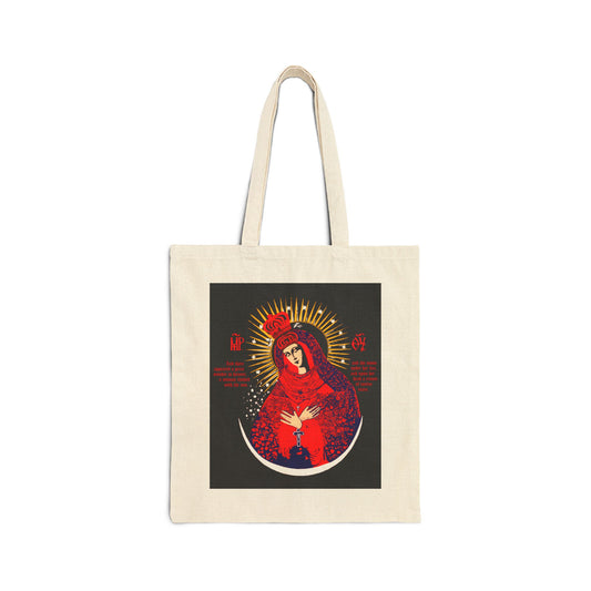 Our Lady the Gate of Dawn Icono-Graphic | Theotokos Crowned | Woman of the Apocalypse | Red Blue & Gold Design | Orthodox Christian Tote Bag