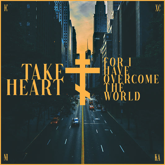 Take Heart, For I Have Overcome the World (John 16:33) | Redemptive Modern City Street Scene Design | Orthodox Christian T-Shirt