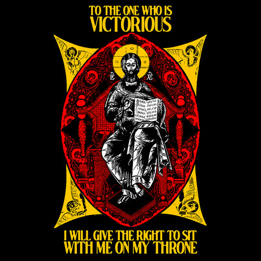 Christ Enthroned IconoGraphic (To the One Who Is Victorious) No. 1 | Orthodox Christian T-Shirt