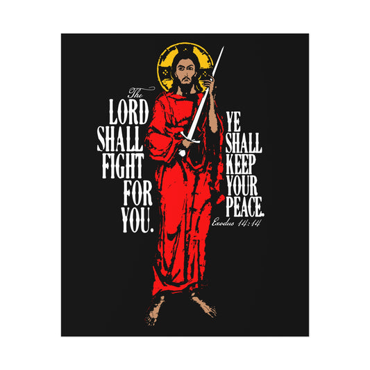 The Lord Shall Fight For You (Exodus 14:14) | Jesus Christ with Sword IconoGraphic | Orthodox Christian Art Poster