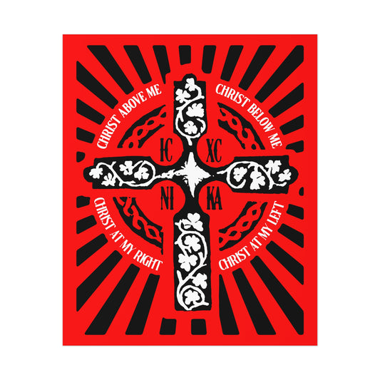Red ICXC NIKA Enniskillen Celtic Cross | Lorica of St. Patrick | Shield Prayer | Orthodox Christian Art Poster