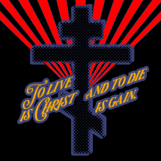 To Live is Christ, and to Die is Gain (Philippians 1:21) Red Blue and Yellow Halftone Design | Orthodox Christian T-Shirt