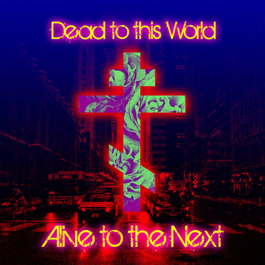 Dead to This World Alive to the Next | Cyberpunk Street Scene with Cross & Flower | Orthodox Christian T-Shirt
