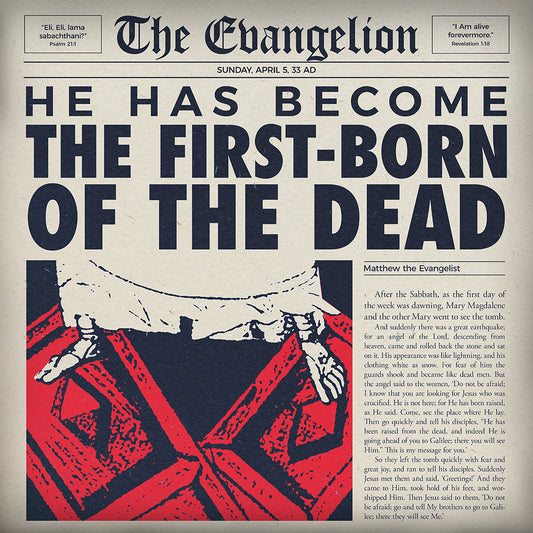 He Has Become the First-Born of the Dead | Paschal Resurrection | Trampling Down Death By Death | Retro Newspaper Front Page Design | Orthodox Christian T-Shirt