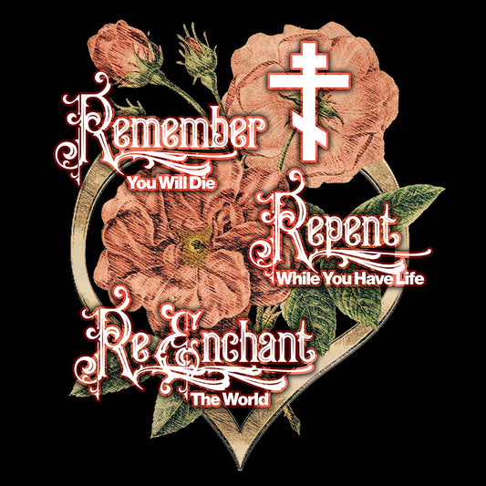 Remember Repent Re-Enchant | Victorian Floral Heart Design | Orthodox Christian T-Shirt