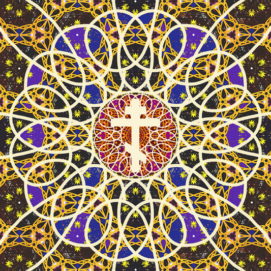 Cosmic Orthodox Cross | Colorful Rose Window Design | Orthodox Christian T-Shirt