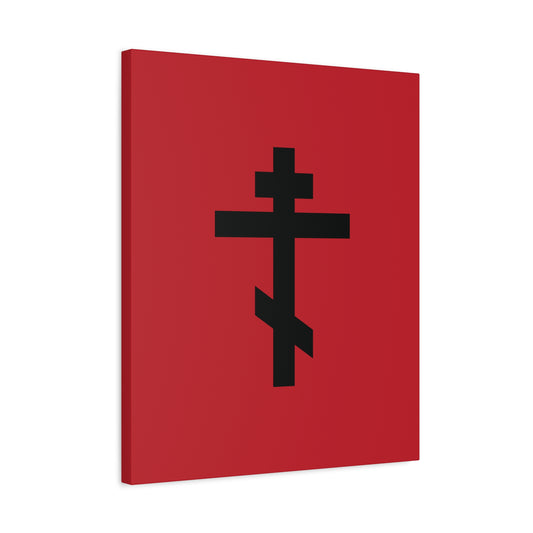 Black Orthodox Cross Red Background | Whoever does not carry his own cross and come after Me cannot be My disciple | Christian Canvas Art