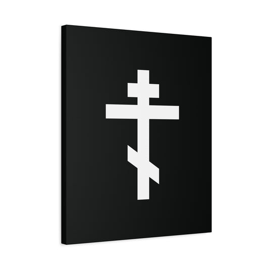 White Orthodox Cross Black Background | Let all the earth venerate the Precious and Life-Giving Cross of the Lord | Christian Canvas Art