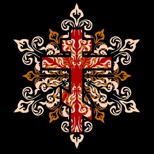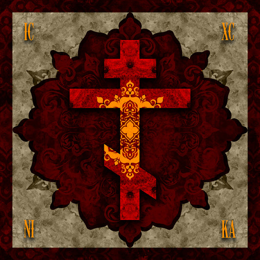Ornate Red & Beige Russian Three-Bar Cross Design | Orthodox Christian T-Shirt