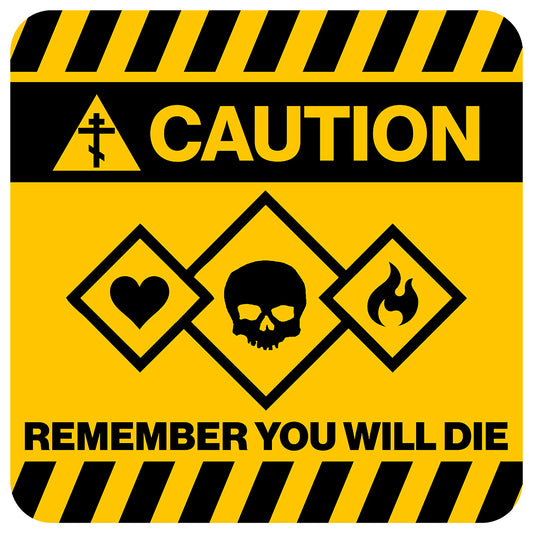 Remember You Will Die | Yellow Caution Street Sign Design | Orthodox Christian T-Shirt