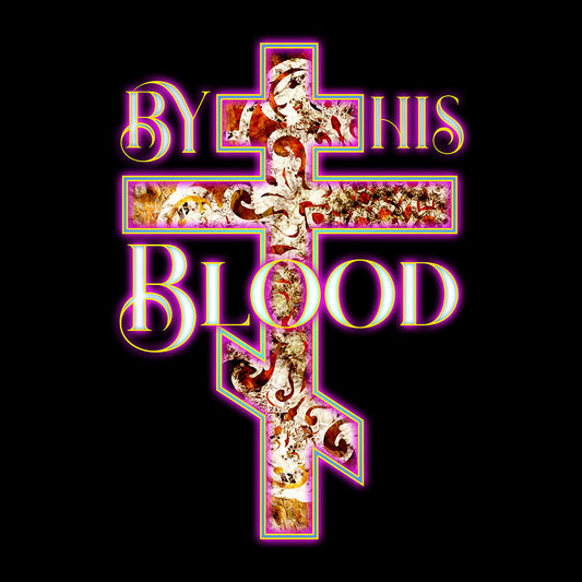 By His Blood Cross Ornate Glowing Russian Cross Orthodox Christian T-Shirt