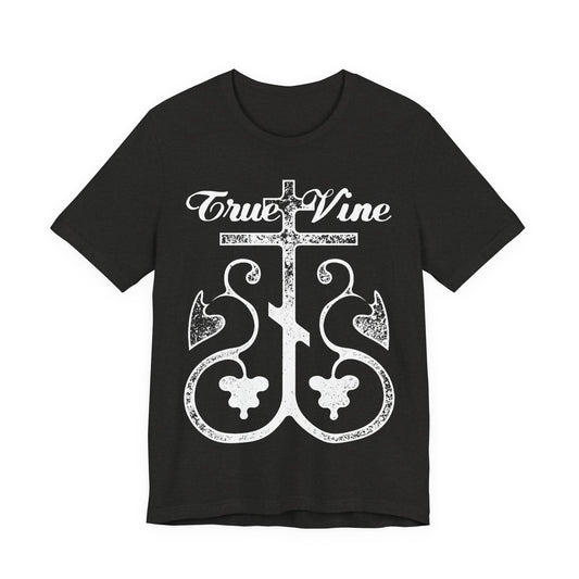 I Am the True Vine (John 15, Ezekiel 15) | Orthodox Cross with Grape Vine | Photocopy Effect | Christian Unisex Cotton T-Shirt