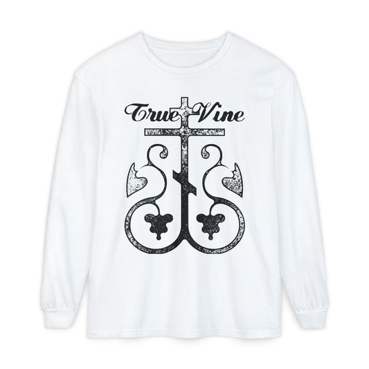 I Am the True Vine (John 15, Ezekiel 15) | Orthodox Cross with Grape Vine | Photocopy Effect | Orthodox Long Sleeve Cotton Shirt