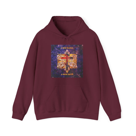 A New Heaven/A New Earth | Red Orthodox Cross on Textured Ornate Background | Orthodox Christian Hoodie