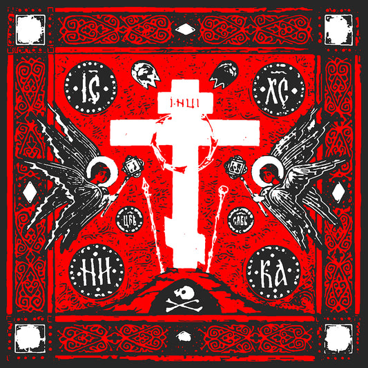 Adoration of Holy Cross IconoGraphic | Striking Red, White, & Black Russian Cross Design w Angels | Orthodox Christian Hoodie 2