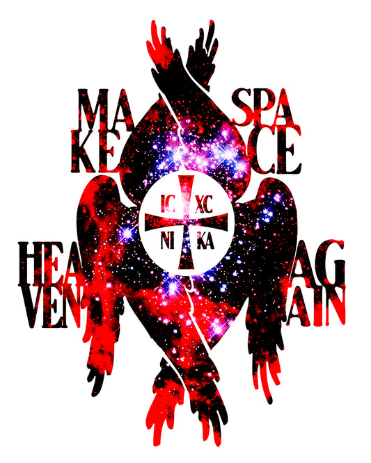 Make Space Heaven Again | Cosmic Textured ICXC NIKA Cross | Seraphim Wings | Orthodox Christian T-Shirt