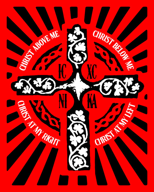 Red ICXC NIKA Enniskillen Celtic Cross | Lorica of St. Patrick | Shield Prayer | Orthodox Christian Cotton T-Shirt