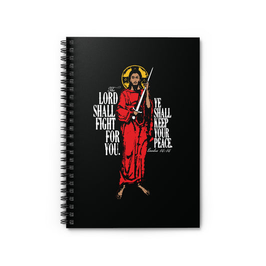 The Lord Shall Fight For You (Exodus 14:14) | Jesus Christ with Sword IconoGraphic | Christian Spiral Notebook